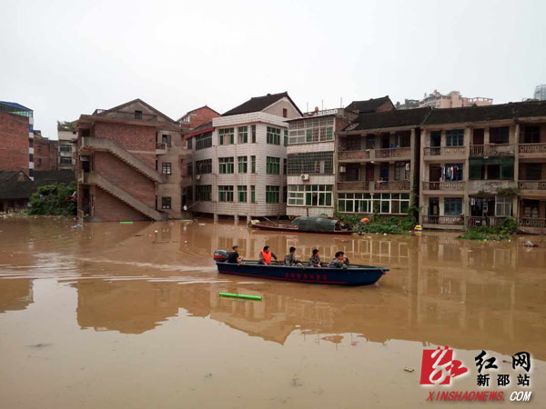 新邵新闻网7月2日讯(通讯员 肖山河 隆清泉)7月2日,资江洪峰到达新邵,洪峰水位超213m,县城被淹。县城的酿溪镇沙湾社区、新涟社区、大新社区、酿溪社区、九头岩、韩家坪、柘溪村和坪上镇筱溪、筱筀村部分房屋进水。