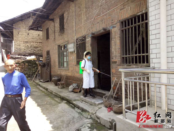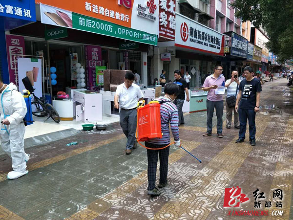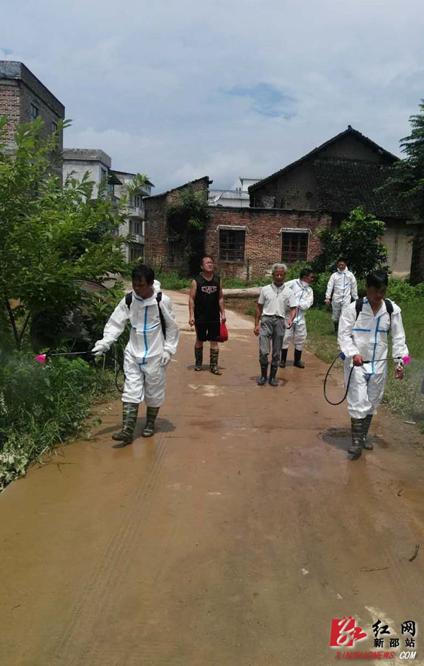 红网新邵县分站7月6日讯(通讯员 岳赟 胡永辉)“你们的消毒很及时,辛苦了,谢谢你们。”7月6日下午,酿溪镇大新社区的居民对前来消毒的工作人员纷纷道谢。6月24日以来,我县遭遇今年入汛以来最强降雨,境内资江最高水位达213.1米,多地受灾严重。为确保灾后人民群众身体健康,杜绝疫情发生,县疾控中心于7月1日即召开抗洪救灾紧急会议,同时启动应急预案,部署救灾防病工作,并派遣14名干部职工连夜应急值守。