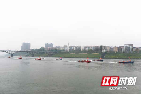 此次演练以入汛以来资江流域普降大到暴雨,新邵县城水域已全面超过警戒水位,出现漫堤险情,无人机侦查发现有群众被洪水围困并有人员落水为模拟背景。来自市县民兵应急分队、医疗救护分队、应急管理局等单位共65人参与演练。演练内容包括河堤巡查、抢筑子堤、水上救援、冲锋舟编队航行,各应急队员沉着冷静、协调配合,顺利完成各项演练科目。